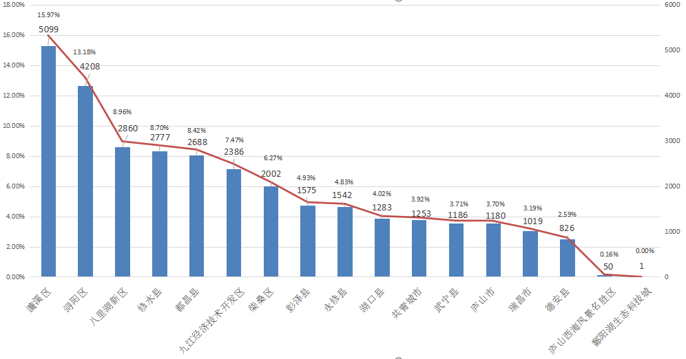 从企业群众诉求行政区域分布总体来看,12月份九江地区诉求工单共31935件。(说明:不包含市直单位数据)