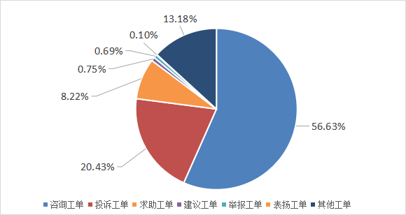 直接答复工单20556件(其中通过“热线来电”渠道受理工单20298件、“邮箱”渠道受理工单100件、“官网”渠道受理工单60件、“110转办件”渠道受理工单36件、“APP”渠道受理工单34件、“省转办件”渠道受理工单28件),占比74.23%。