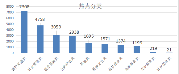 建议类207件,占比0.75%,主要涉及城乡建设、治安交通、交通港口、绿化市容等问题;