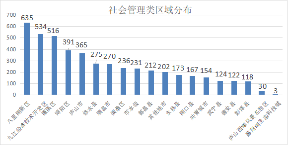 从诉求区域分布来看,社会管理类诉求在八里湖新区、九江经济技术开发区及濂溪区的分布量较大。