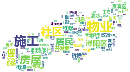 生活环境类诉求包括物业、社区、施工、房屋四个热点,主要表现在物业服务、社区服务、施工噪音、房屋拆迁等方面。