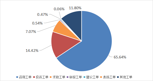 咨询类19966件,占比65.64%,主要涉及治安交通、医疗医保、人力保障、住房保障、市监消保、学校教育、城乡建设、环境保护、交通港口等问题;