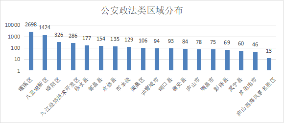 从诉求区域分布来看,公安政法类诉求在濂溪区、八里湖新区及浔阳区的分布量较大。