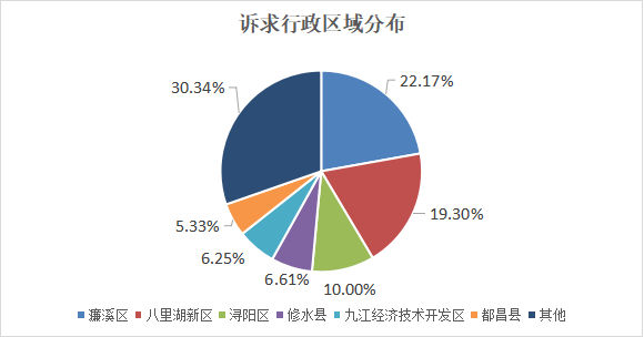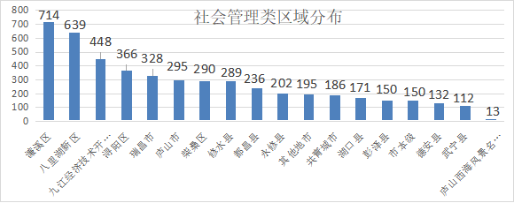 从诉求区域分布来看,社会管理类诉求在濂溪区、八里湖新区及九江经济技术开发区的分布量较大。