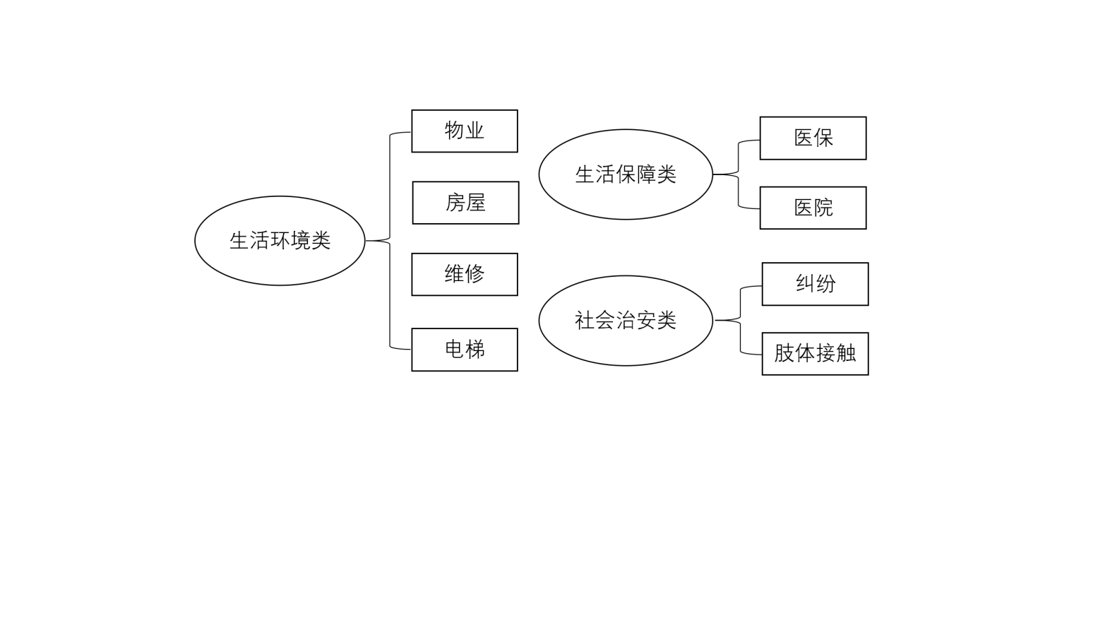 生活环境类诉求包括物业、房屋、维修、电梯四个热点,主要表现在物业服务、房产证问题、房屋维修、电梯故障等方面。