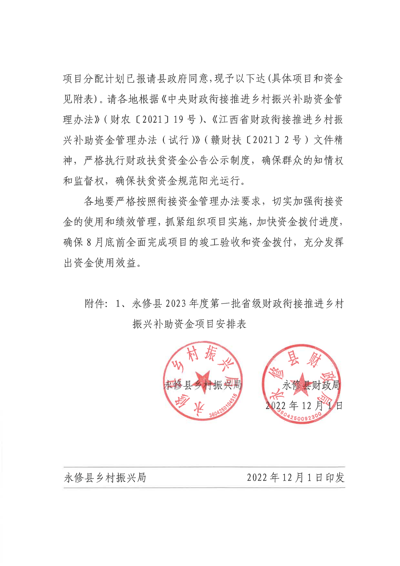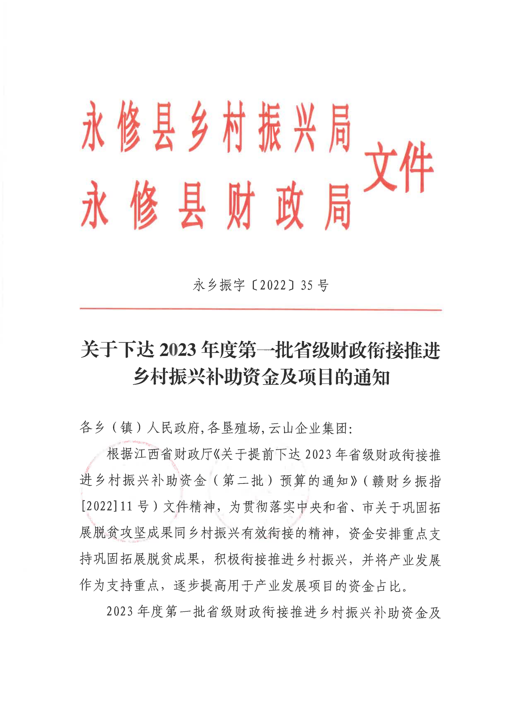 关于下达2023年度第一批省级财政衔接推进乡村振兴补助资金及项目的通知