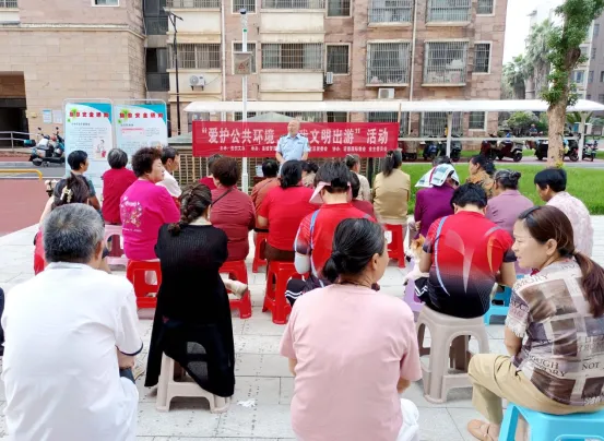 为规范旅游市场秩序,提升市民文明旅游意识,助力文明城市创建,9月19日,永修县创文办、县城管局、县文广旅局联合诺德国际物业及业主委员会,走进诺德国际小区广场,开展“爱护公共环境,你我文明出游”主题宣传活动,将文旅市场监管服务延伸至群众“家门口”,用“接地气”的方式,织密导游乱象“防护网”。