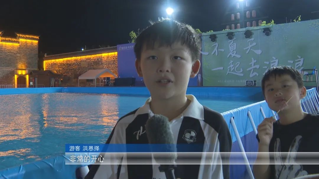 “今天和朋友来水上乐园,第一感觉就是特别壮观,泡沫飞过来好玩极了,还有很多汽艇,主持人还丢水气球,和朋友一起玩太开心了。”小游客洪恩择兴奋地说。