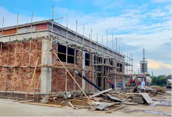 汗水浇灌下,项目跑出“加速度”——便民场所主体率先完工;户外健身场骨架挺立,设施安装紧锣密鼓;停车场基础夯实,标识标牌正在装配……目前整体进度已达50%,冲刺9月底全面竣工的号角已然吹响。