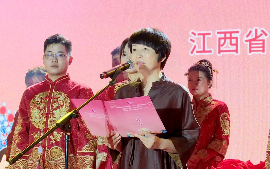 8月10日是传统节日“七夕节”。当天上午,2024年全国“我们的节日•七夕”主题文化示范活动“情满赣鄱·向幸福出发”——江西省移风易俗集体婚礼暨文艺节目展演在永修吴城鄱阳湖生态文明会展中心举行。省委常委、省委宣传部部长卢小青出席活动并致证婚词。省委宣传部副部长、省文明办主任龚建文,市委常委、市委宣传部部长孙金淼分别致辞。民政部社会事务司一级巡视员杨宗涛,省文联党组成员、主席叶青,省民政厅党组成员、副厅长李晖,省农业农村厅党组成员、副厅长曹爱珍,省妇联党组成员、副主席刘丽,团省委二级巡视员张雪黎,县委副书记、县长朱超,市民政局党组书记、局长万述幼,县委常委、县委宣传部部长淦家寨及全省各设区、市有关领导出席。卢小青在证婚词中,衷心表达了对每一对新人的祝福。她说,七夕,作为中华民族的传统节日,自古以来就是爱情的象征。今天喜结连理的100对新人,来自全省不同地方,有着不同职业,接受不同教育,但他们都做了一个共同的决定——不要高额彩礼,不搞大操大办,大家欢聚在一起,参与到集体婚礼的各项仪式环节中,用实际行动弘扬和践行低碳环保、绿色生态的生活理念,传递和倡导时尚文明、勤俭节约的婚恋新风,以别样的方式使这一庄重的时刻汇集起更多的祝福和浪漫。他们是新时代的生力军,是新风尚的引领者,也是美好爱情的守护者。相信这样一场别开生面的婚礼仪式,一定会让他们留下终生难忘的记忆。龚建文在致辞中说,这次“情满赣鄱·向幸福出发”全省移风易俗集体婚礼暨文艺节目展演活动,是2024年全国“我们的节日·七夕”主题文化6个示范活动之一,是推进移风易俗、培育文明新风的重要举措,对弘扬正确婚恋观、倡树文明好风尚具有重要作用。各地各部门要综合施策、同向发力,对标对表党的二十届三中全会精神,按照省委十五届六次全会部署要求,改进创新文明培育、文明实践、文明创建工作,发挥这次集体婚礼、文艺展演的示范效应,不断推动移风易俗乡风文明建设取得新成效。孙金淼表示,近年来,九江以创建第七届全国文明城市为统领,深入推进移风易俗乡风文明三年专项行动,推动精神文明建设取得了扎实成效。九江将以此次示范活动为契机,认真学习借鉴兄弟地市的好经验、好做法,不断推动移风易俗乡风文明工作向更深层次、更广范围、更高水平迈进,为江西打造新时代全国道德高地、文明高地、精神高地贡献更多九江力量。活动现场,许多传统婚俗“闪亮登场”,百对新人齐声吟诵却扇诗、行拜堂礼、齐念婚书,在传统美感和简约国潮并存的集体婚礼中感受甜蜜幸福;集体婚礼结束后,还举行了丰富多彩的移风易俗优秀文艺节目展演。活动期间,卢小青等领导还一同观看了永修非物质文化遗产——《建昌锣鼓》节目。据了解,此次活动由中央宣传部文明实践局等部门主办。省委宣传部、省文明办、省文联、九江市委、市政府承办。市委宣传部、市文明办、市文联以及永修县委、县政府协办。活动旨在有效深入贯彻落实全省移风易俗乡风文明三年专项行动联席会议暨高价彩礼问题重点地区工作部署会精神,进一步引导广大群众自觉抵制陈规陋习,营造婚事新办、节俭养德、文明理事的社会风尚。
