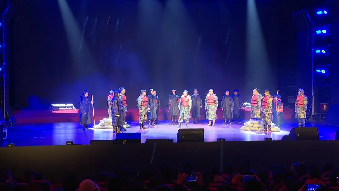 观众段女士说:“我觉得今天的舞台节目做得特别好,各种节目让人眼前一亮,最让我特别感慨的是,抗洪抢险的节目,让我看得热血沸腾。”