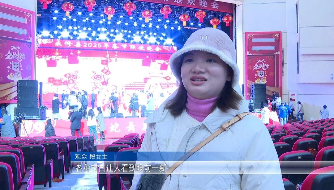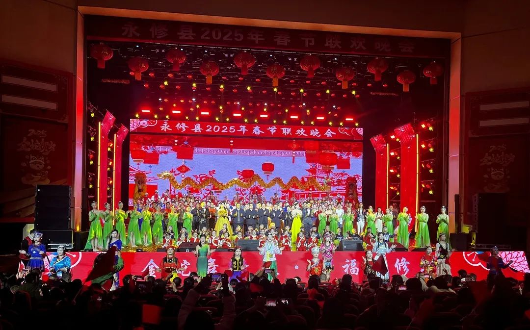 金蛇舞新春·幸福永修年,1月26日晚,2025年春节联欢晚会在永修县文体艺术中心举行。县委书记秦岭,县委副书记、县长朱超,县委副书记万祥,县人大常委会主任袁汝琴,县政协主席张义红等四套班子领导与各界代表和群众一同观看晚会并与演职人员合影留念。