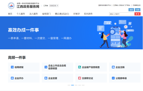 赣服通高效办成一件事专区、江西政务服务网高效办成一件事专区 |