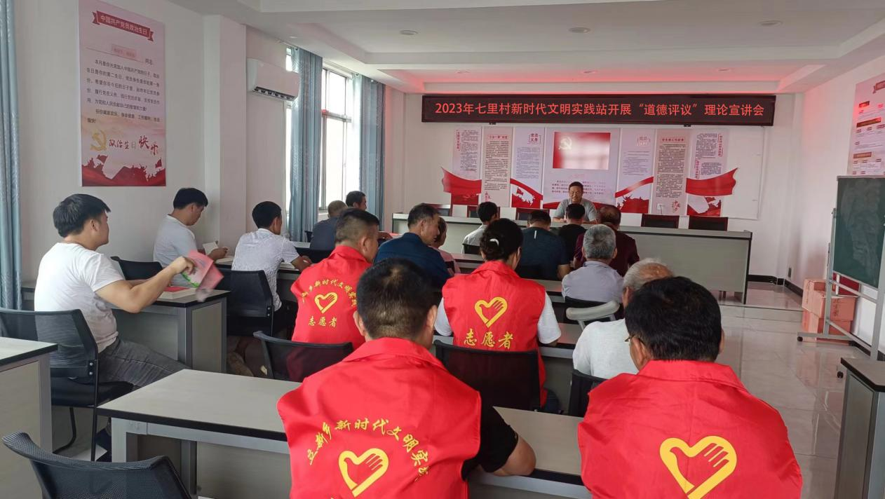 为推动移风易俗,树立文明新风,不断提高村民道德文明素养,8月14日,立新乡七里村新时代文明实践站开展“道德评议”理论宣讲会,由村干部、党员代表、群众代表等组成的20余名评议员齐聚一堂,在“看、听、评、议”过程中感知身边的真善美和不足,借移风易俗之力让文明新风在乡村落地生根。
