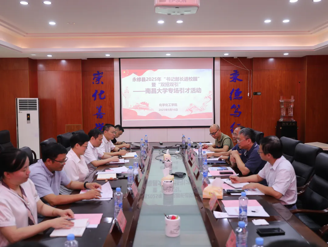9月16日,永修县2025年“书记部长进校园”暨“双招双引”专场引才活动在南昌大学化学化工学院举行。