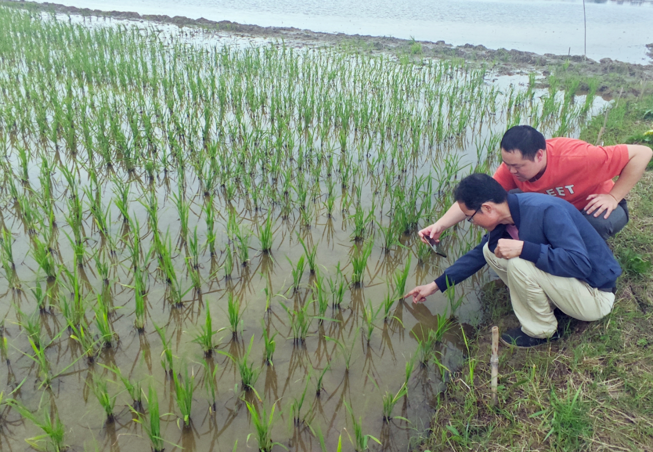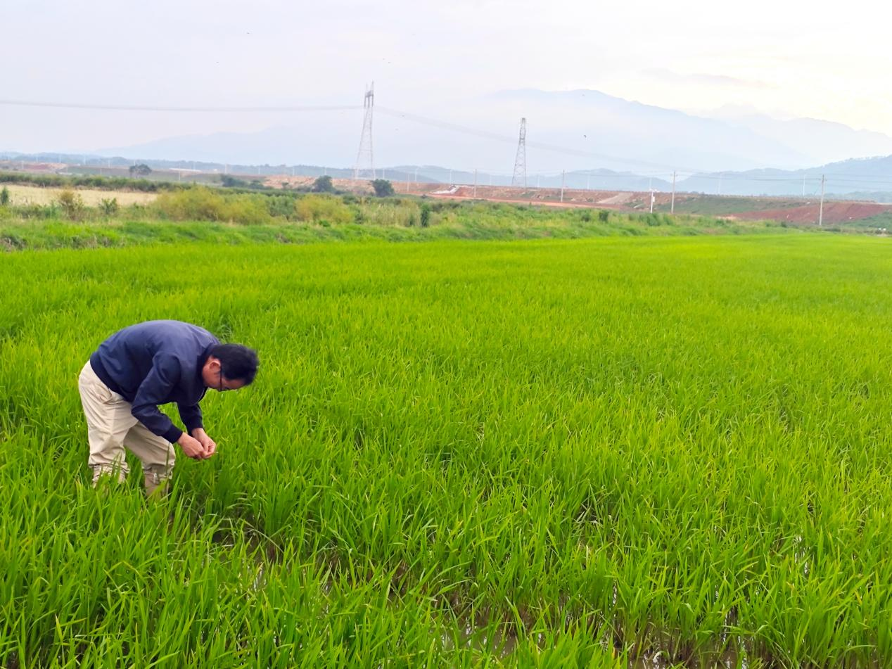 农技人员宛如经验丰富的“医生”,为早稻“把脉问诊”,开展苗情与病虫害监测调查。