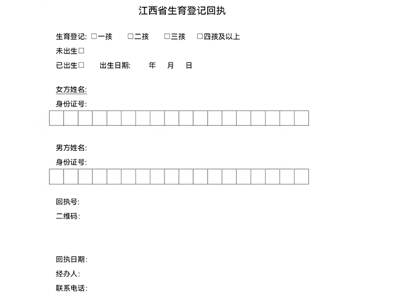 2.可在“赣服通”领取《江西省生育登记回执》电子回执。