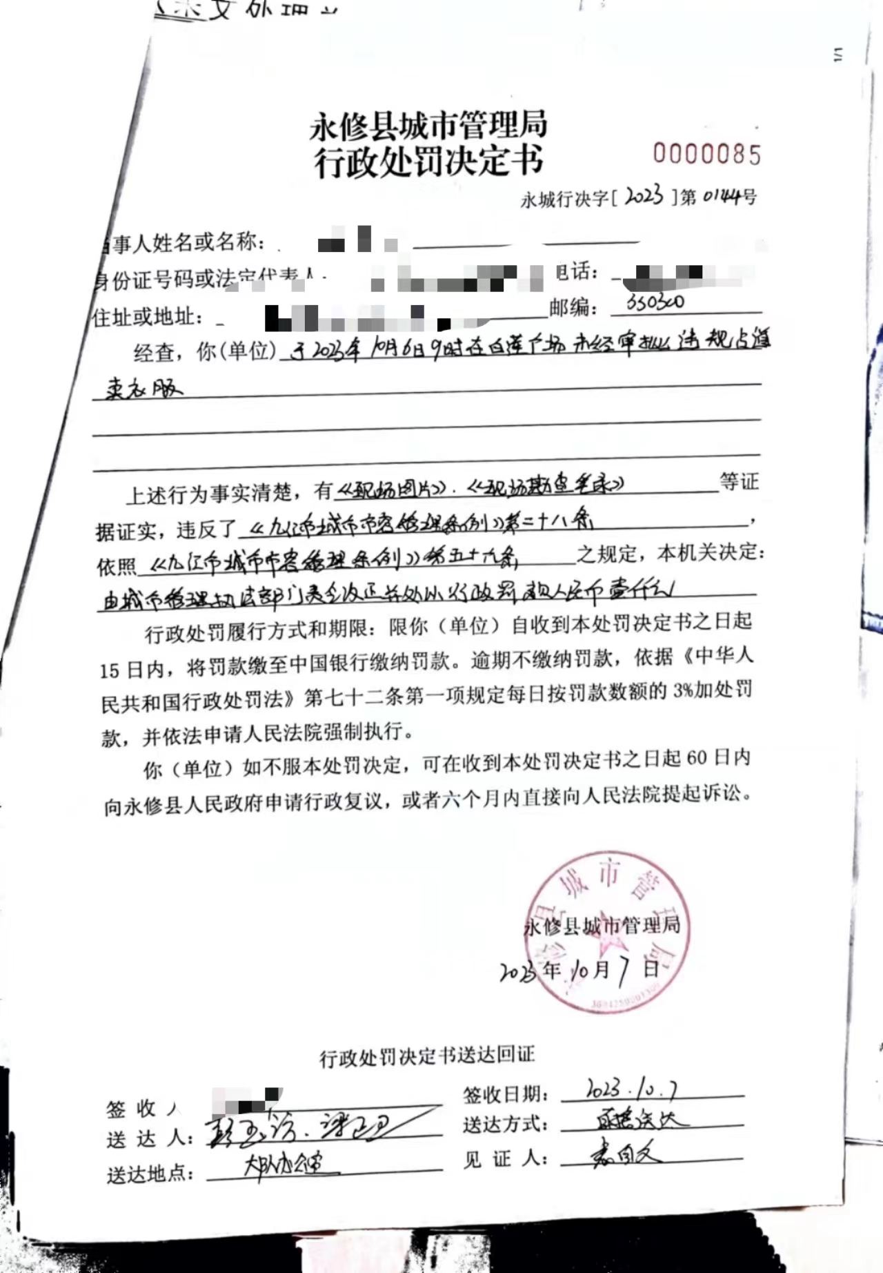 行政处罚决定书