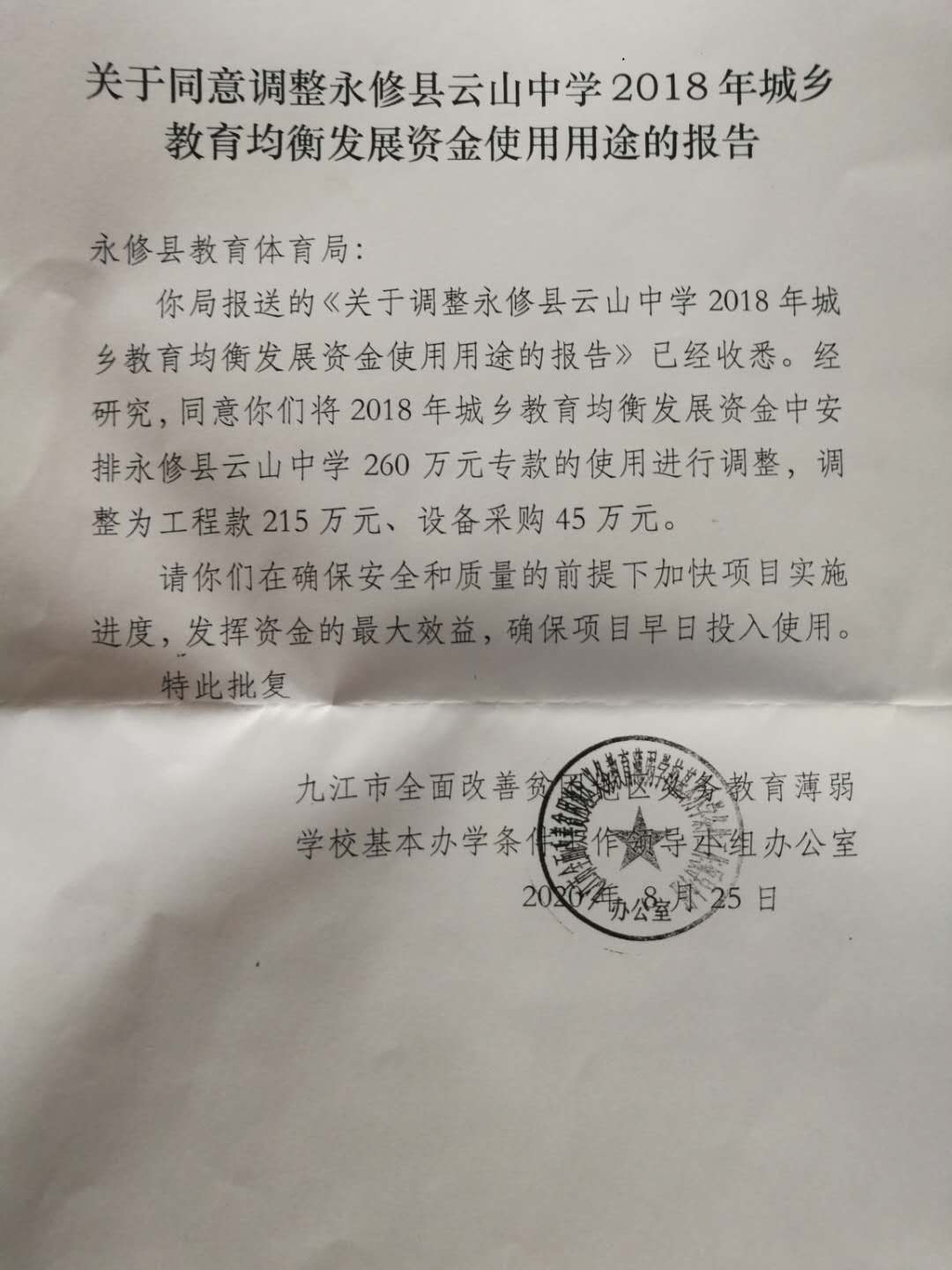 永修县云山中学学生食堂和宿舍及附属工程项目建设基本信息