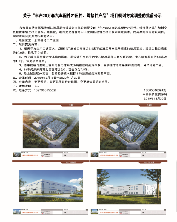 关于“年产20万套汽车配件冲压件、焊接件产品”项目规划方案调整的批前公示