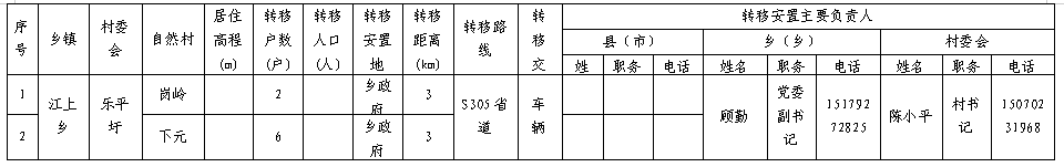 江上乡乐平圩人员转移安置方案