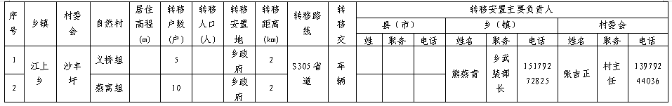 成立由乡党委、政府领导、村书记等组成的江上乡转移安置工作小组,其组成人员如下: