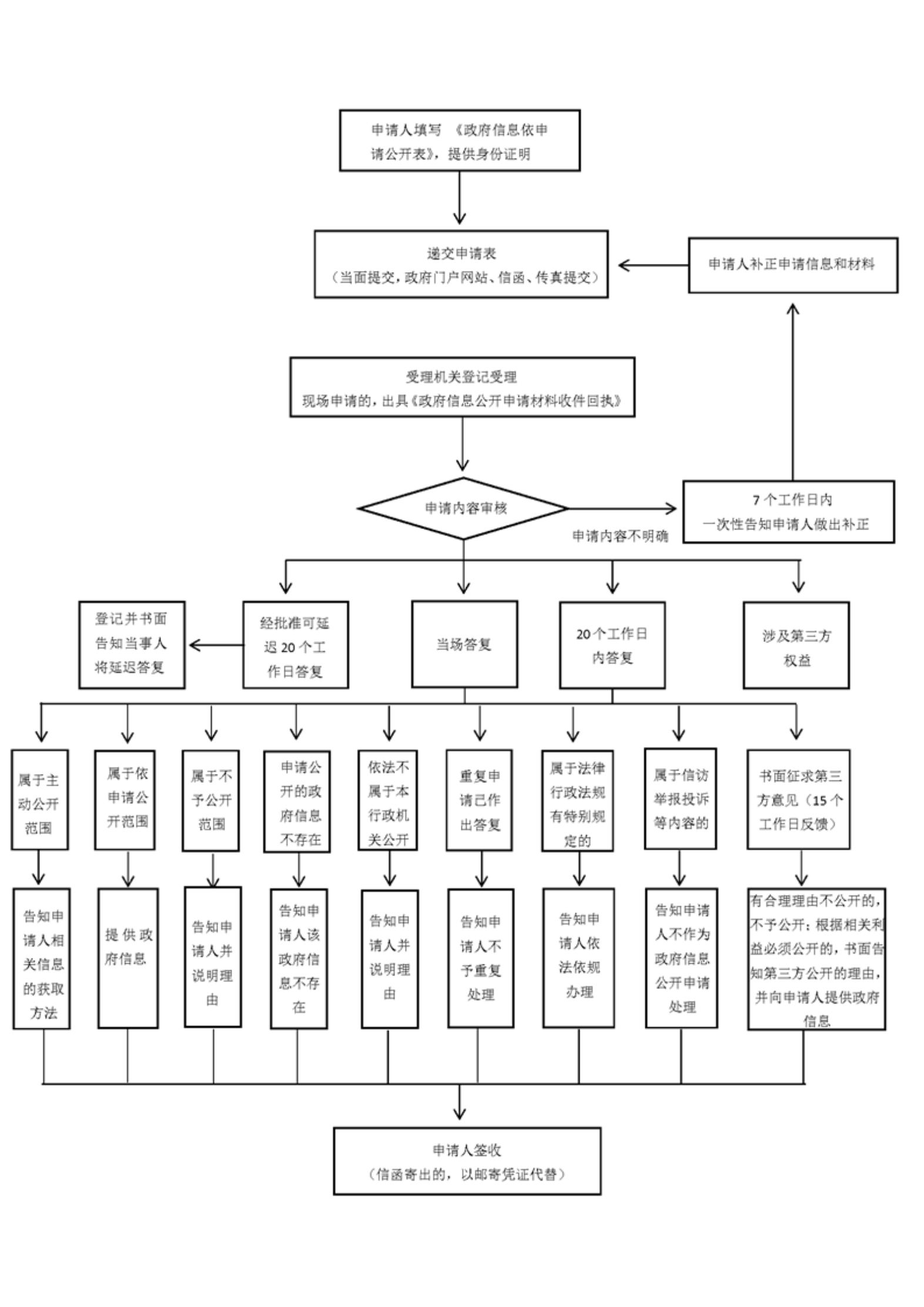 (1)本机关收到申请后,将先从形式上对申请的要件是否完备进行审查,对于要件不完备的申请予以退回,要求申请人补正。对申请内容不明确的,将自收到申请之日起7个工作日内一次性告知申请人作出补正,说明需要补正的事项和合理的补正期限。答复期限自行政机关收到补正的申请之日起计算。申请人无正当理由逾期不补正的,视为放弃申请,本机关对该申请将不再予以处理。