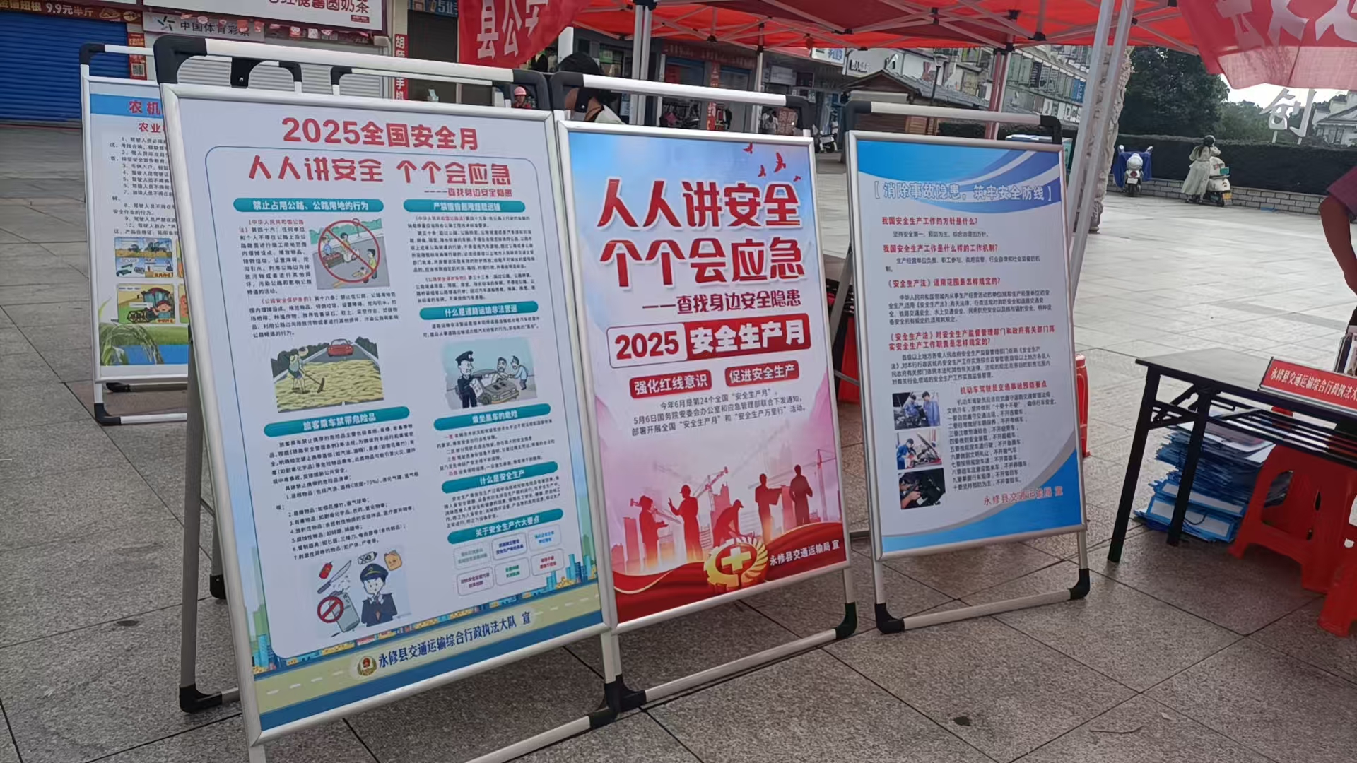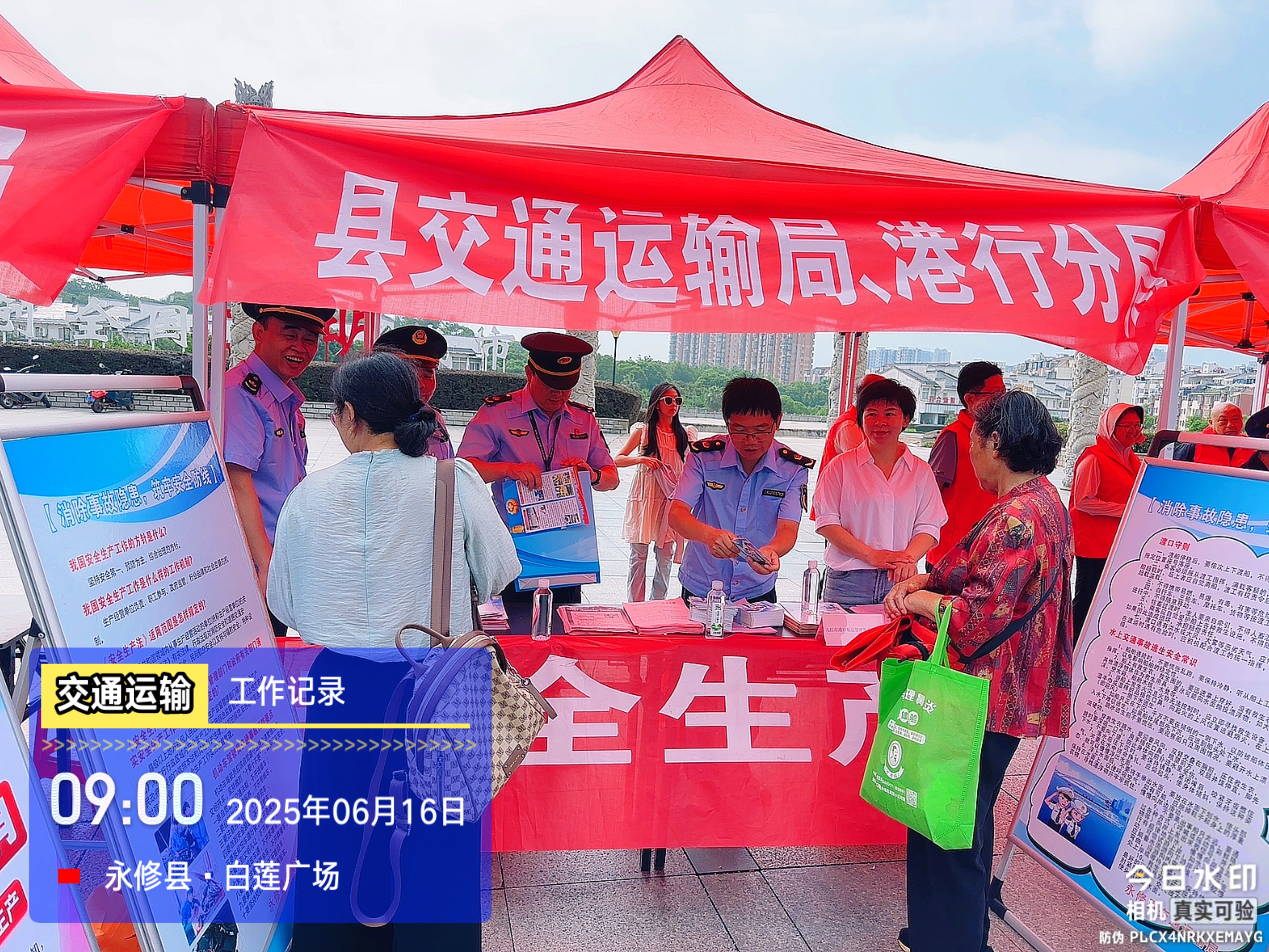今年6月,是全国第24个安全生产月。为进一步增强全民的安全生产和查找身边隐患的意识,防范遏制安全生产事故发生,切实推动交通运输系统安全生产形势持续稳定。6月16日上午,永修县交通运输综合行政执法大队在永修县白莲广场开展以“人人讲安全、个个会应急——查找身边安全隐患”为主题的“安全生产月”宣传活动。