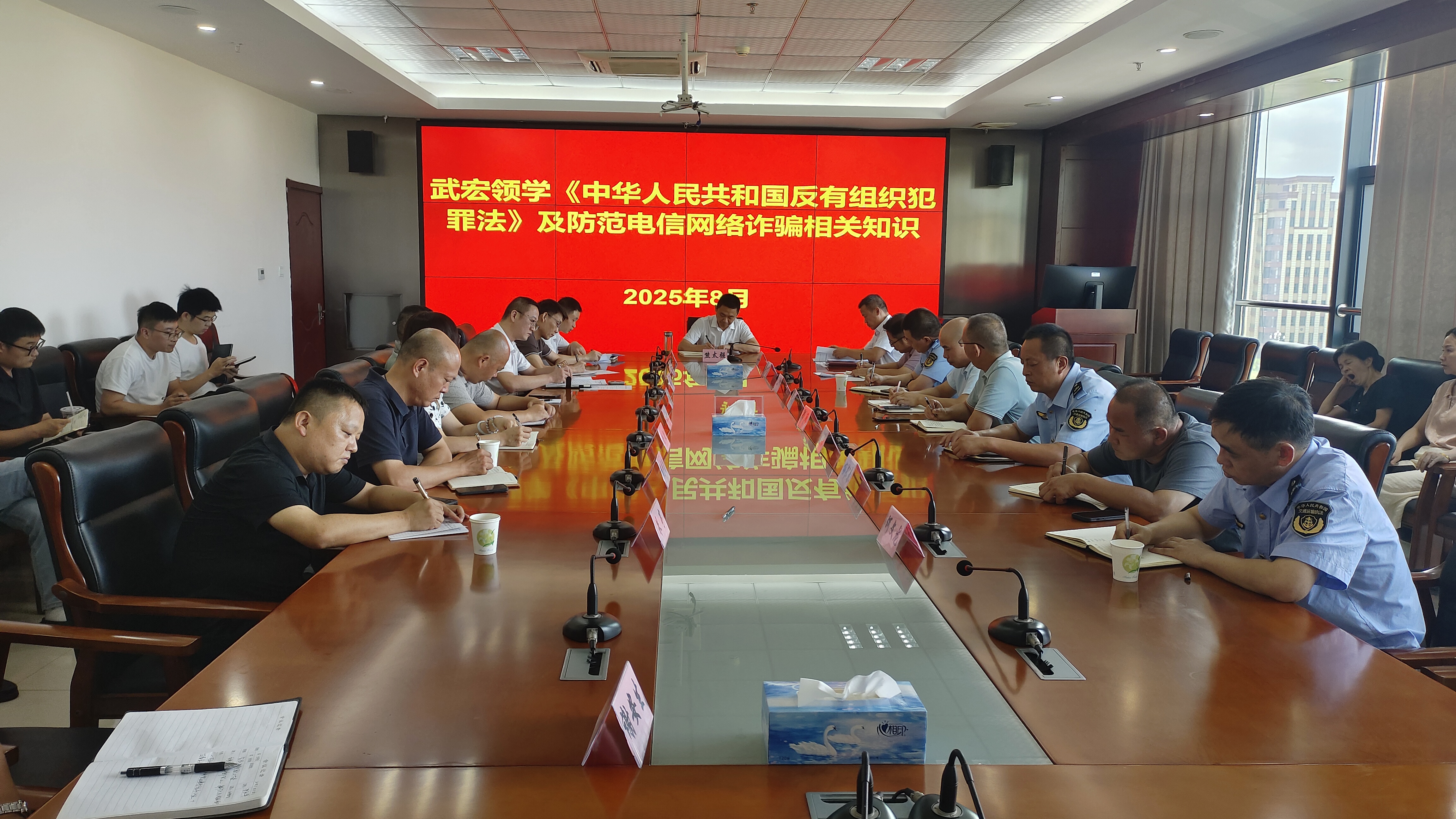 为深入贯彻落实党中央关于常态化开展扫黑除恶斗争的决策部署,切实提升交通运输领域依法打击、防范有组织犯罪的能力水平,8月8日,县交通运输局将学习贯彻《中华人民共和国反有组织犯罪法》作为深化扫黑除恶常态化的重要抓手,召开会议,明确“领导班子带头学、业务骨干重点学、全体职工全员学”的目标要求。