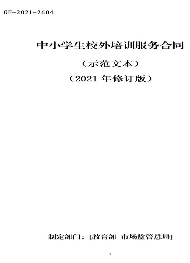 《中小学生校外培训服务合同(示范文本)》(2021年修订版)