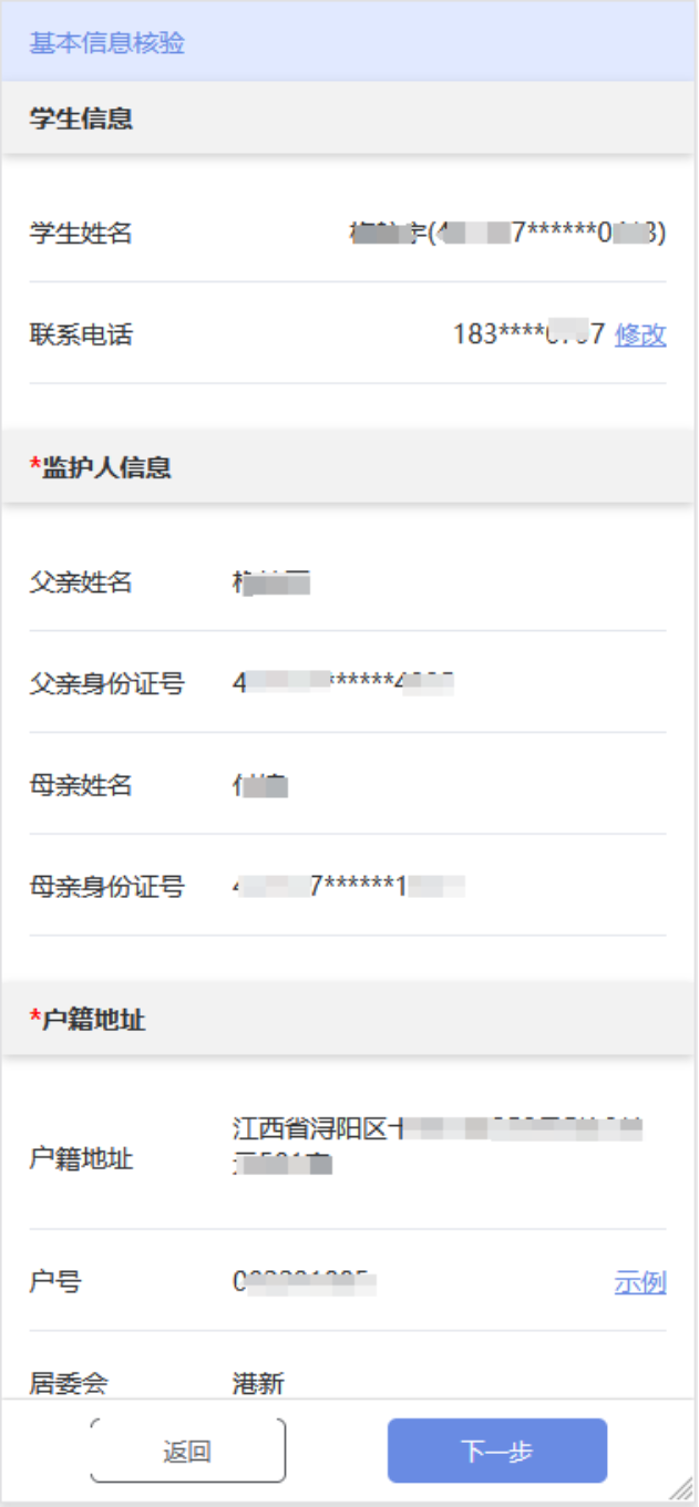 学生户籍信息根据用户授权查询公安户籍信息,如果查询结果与实际情况不符,你可以直接修改相应信息项。
