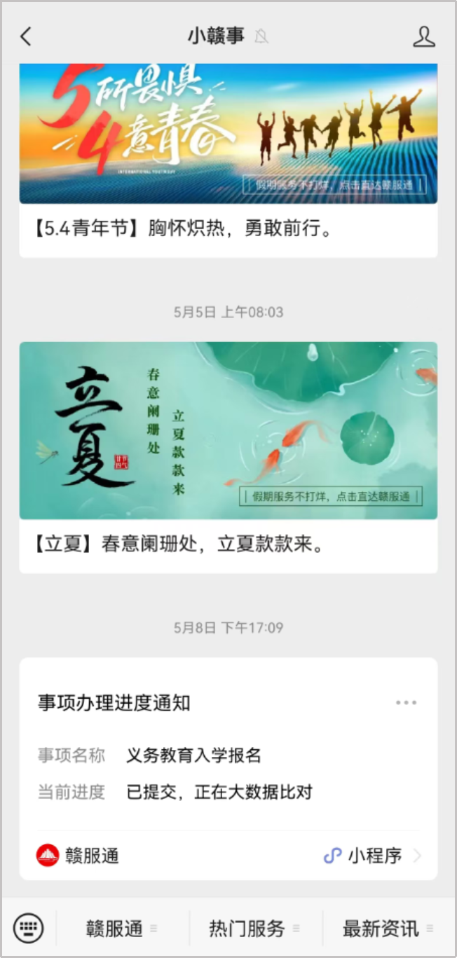 提醒:学生家长可以关注“小赣事”公众号及时获取报名审核进度消息。