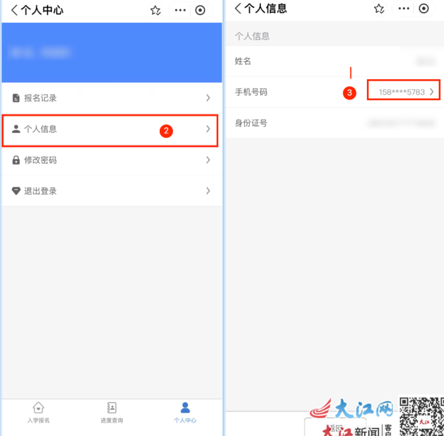 答: 报名系统上的手机号不对是由于你在“赣服通”绑定的手机号不对导致的,进入系统后,点击个人中心,进入个人中心页面,点击个人信息,并进入个人中心列表页面,再点击手机号,点击进去修改手机号,输入正确的手机号,点击获取验证码,输入验证码点击确认修改即可。