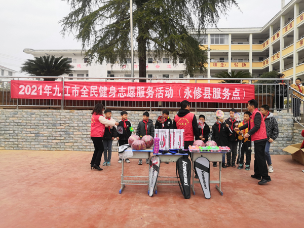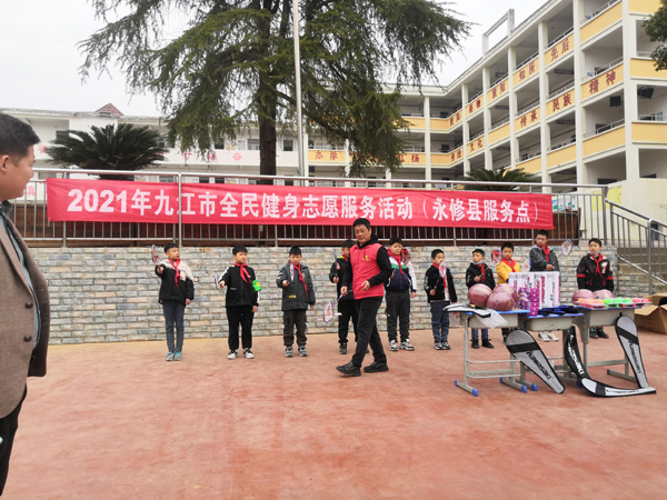12月8日,九江市全民健身志愿服务活动永修县服务点虬津小学站志愿服务活动如期举行。县教体局党委委员李君、志愿者代表县教体局体育股股长淦阳春、羽毛球练员王立华以及虬津镇中心小学部分师生代表参与了活动。