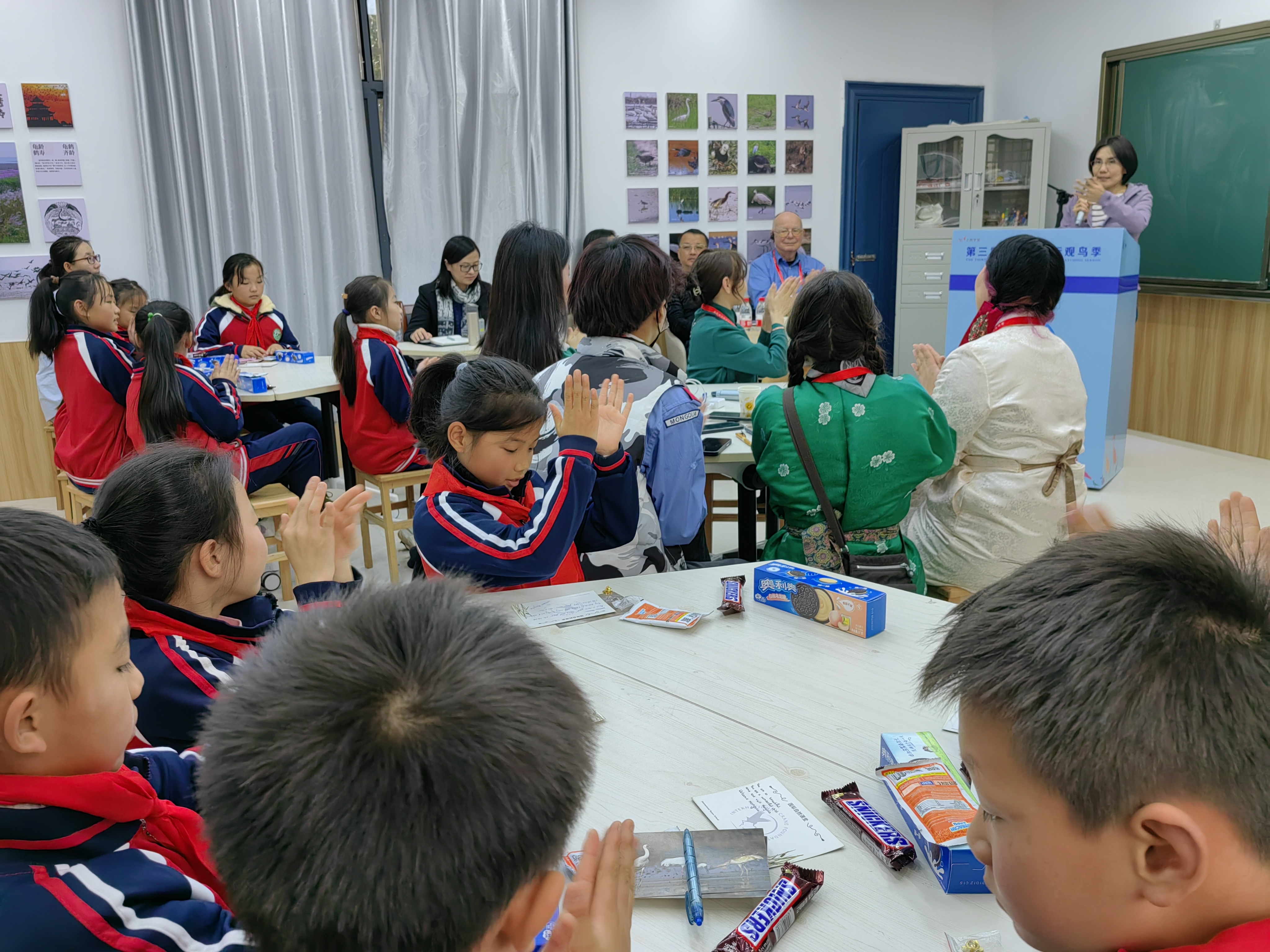 吴城中心小学“小鹤学堂”项目团队教师也给孩子们上了一节环境教育课,介绍了鄱阳湖的生态环境和飞来越冬的鹤类知识,号召大家共同携手保护候鸟及其栖息地。