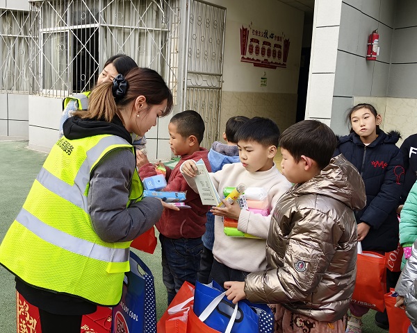 志愿者们首先了解学校的大致情况和学生的生活学习情况,并为孩子们送上了礼物,有五颜六色的彩泥、铅笔、文具盒等学习用品,还有美味的坚果。孩子们拿着礼物爱不释手,露出了灿烂的笑容。