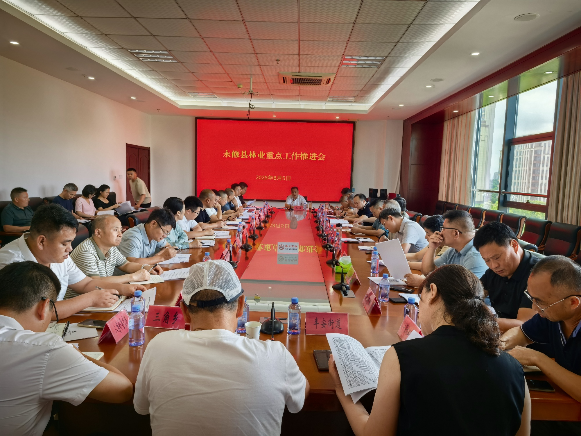 8月5日,永修县林业局组织召开全县林业重点工作推进会,县林业局班子成员、各股室负责人以及全县18个乡(镇、街道、场、企业集团)分管领导参加会议。