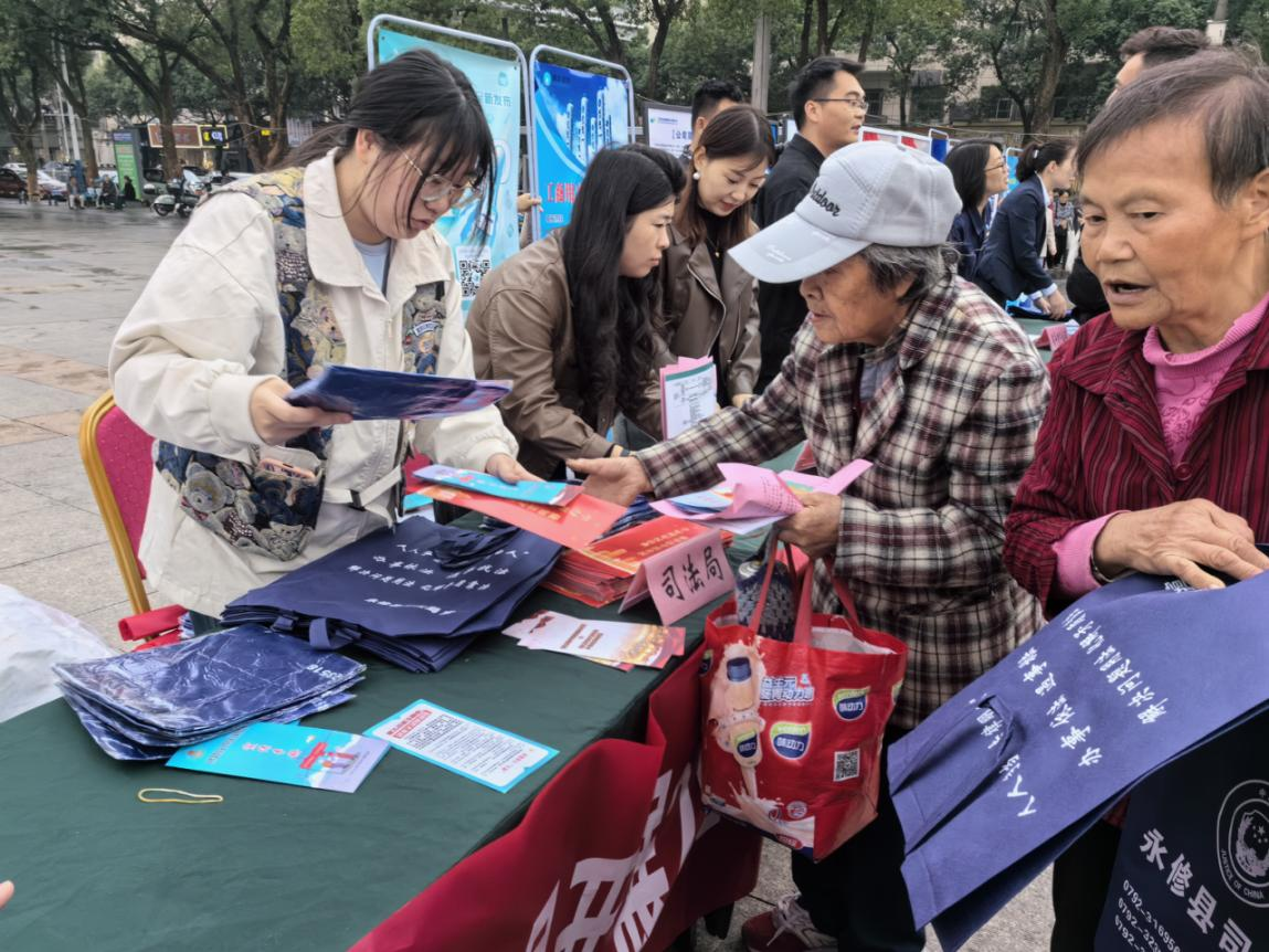 在永修县白莲广场,永修县司法局联合县行政审批局、县人社局、县发改委等20家单位,通过摆放展板、发放宣传手册、宣传纪念品等方式,向市民和企业广泛宣传县司法局在优化营商环境方面的政策举措、服务内容以及办事流程等,共发放宣传资料300余份,吸引了众多群众驻足了解。