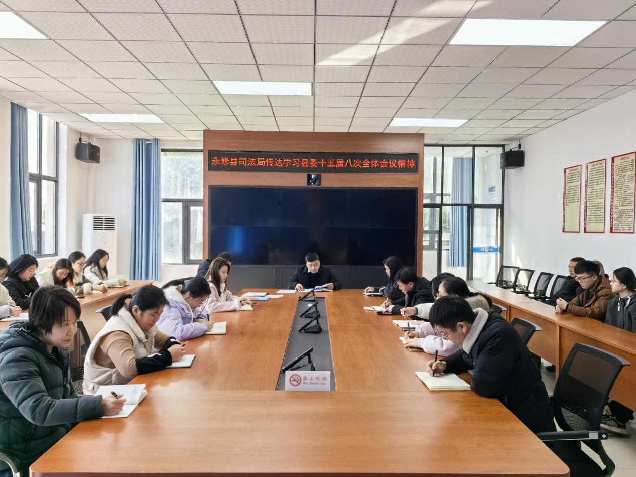 1月16日,永修县司法局召开会议,传达学习县委十五届八次全体会议精神,安排部署贯彻措施。