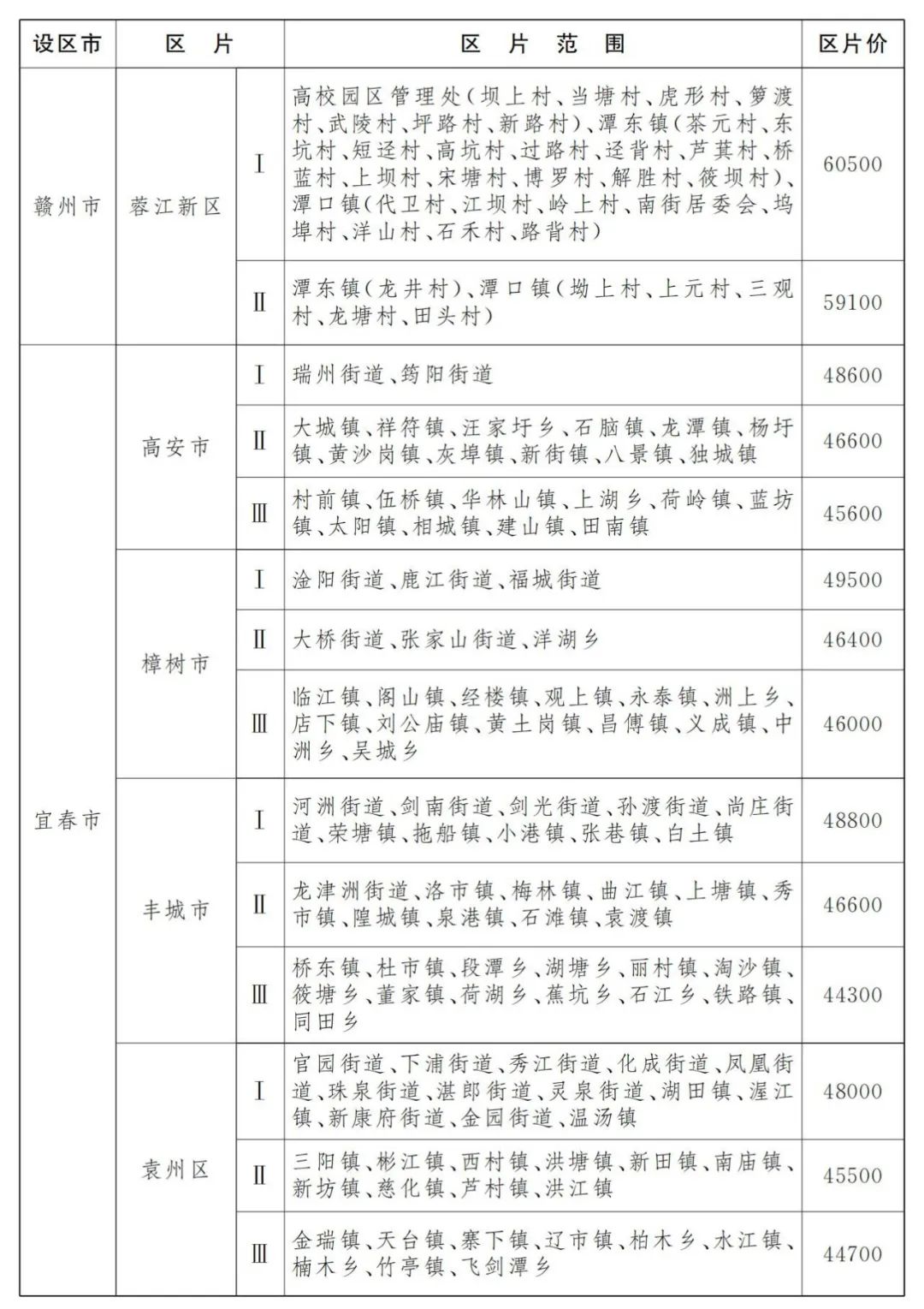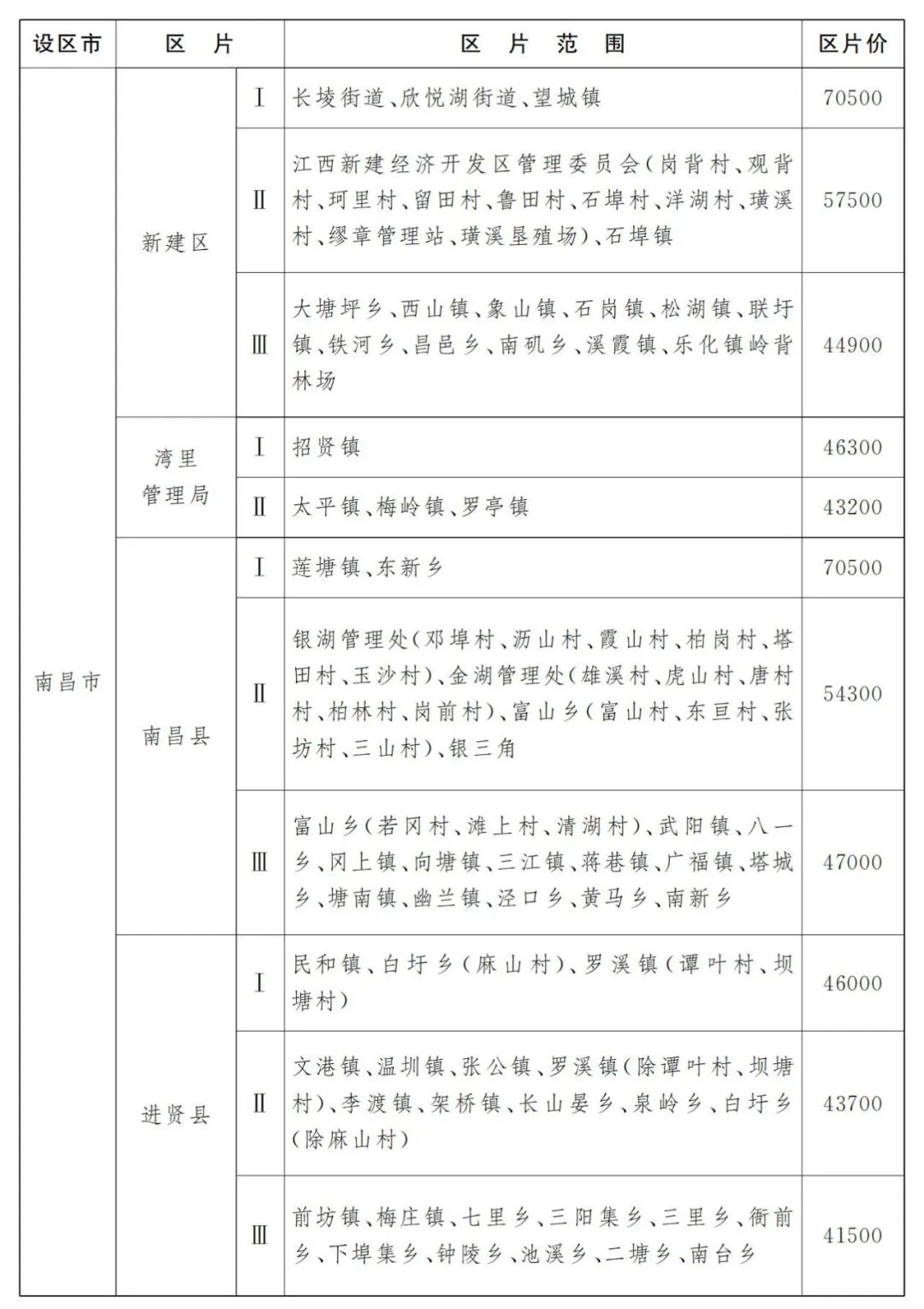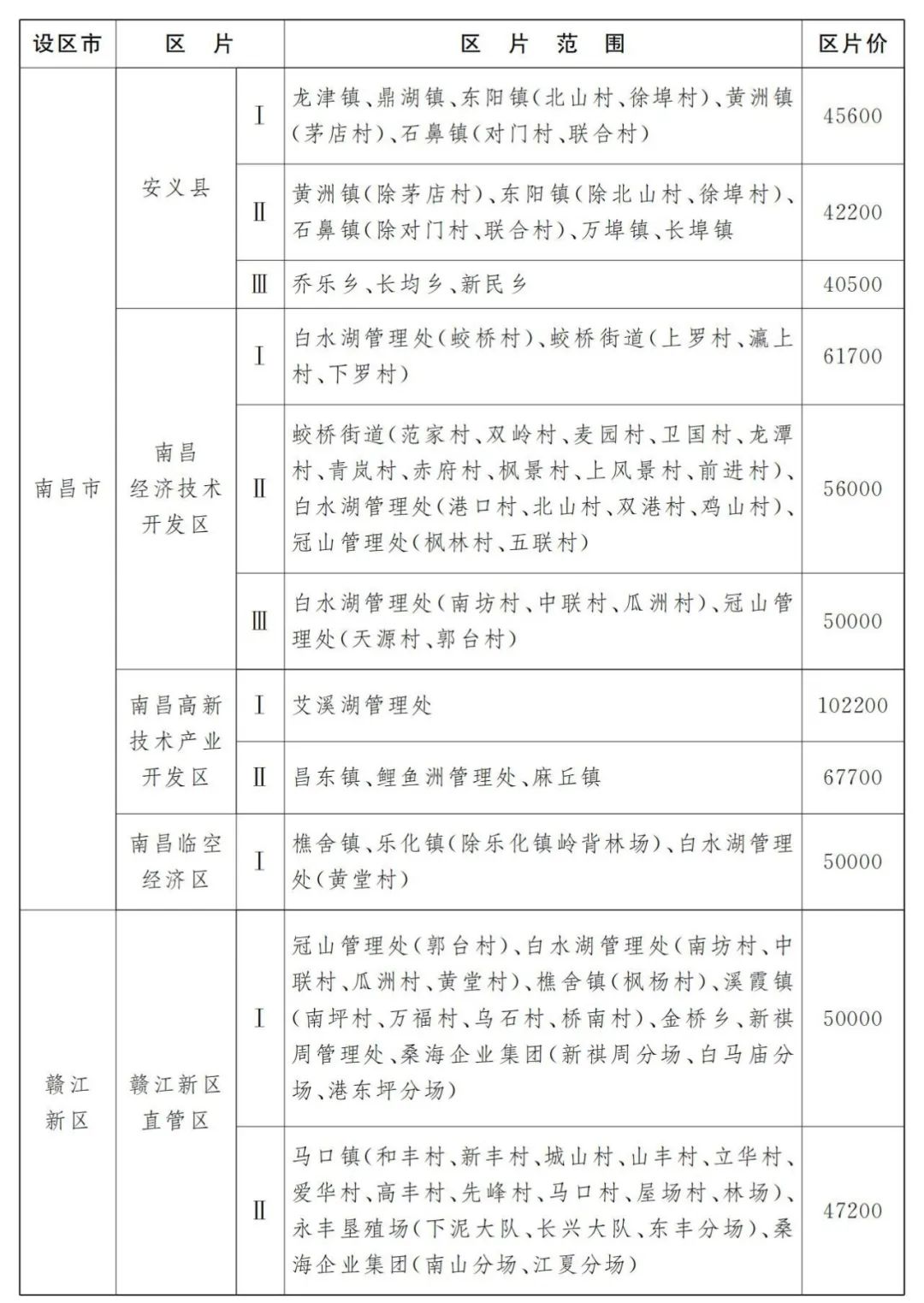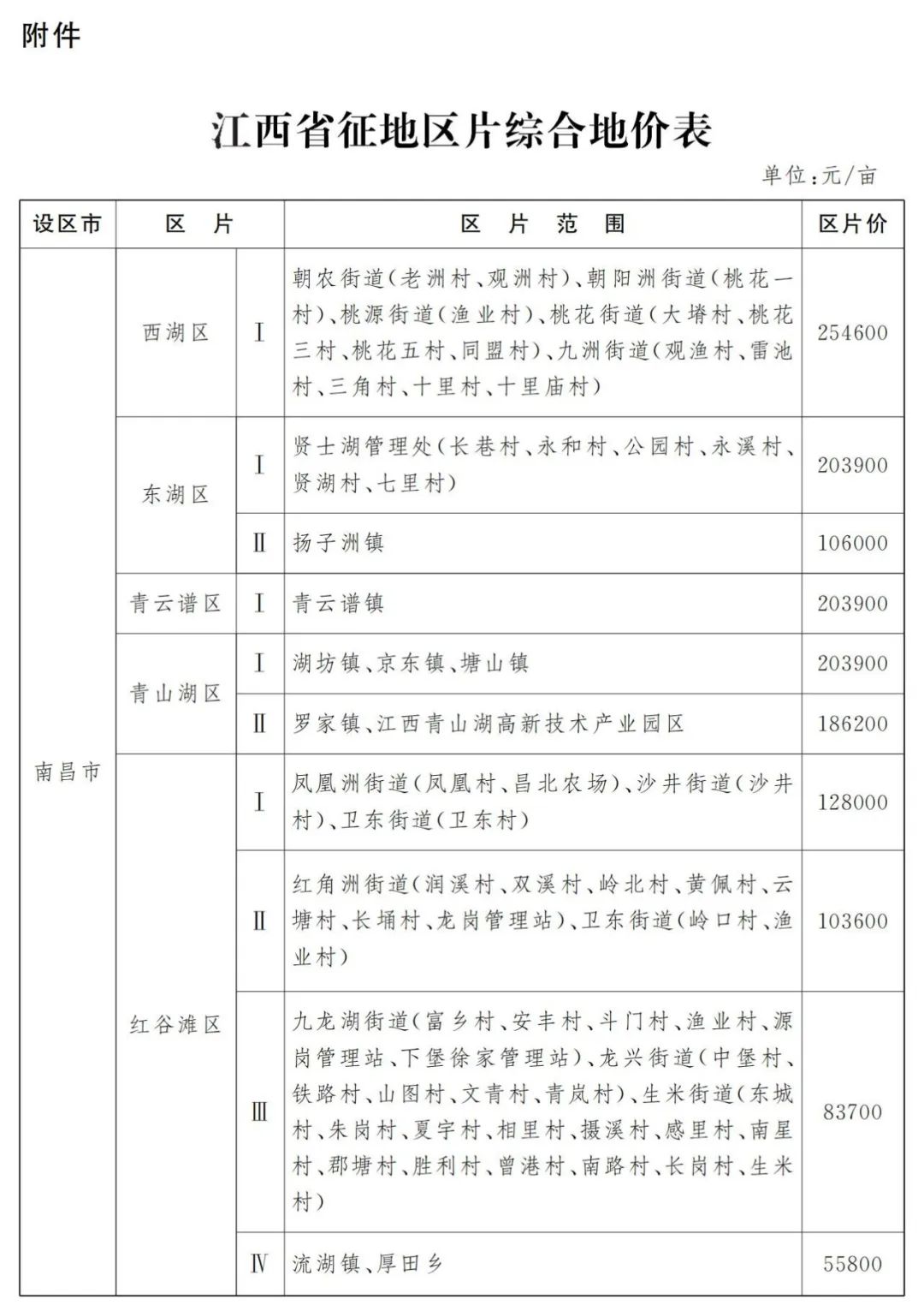 江西省人民政府关于公布全省征地区片综合地价的通知