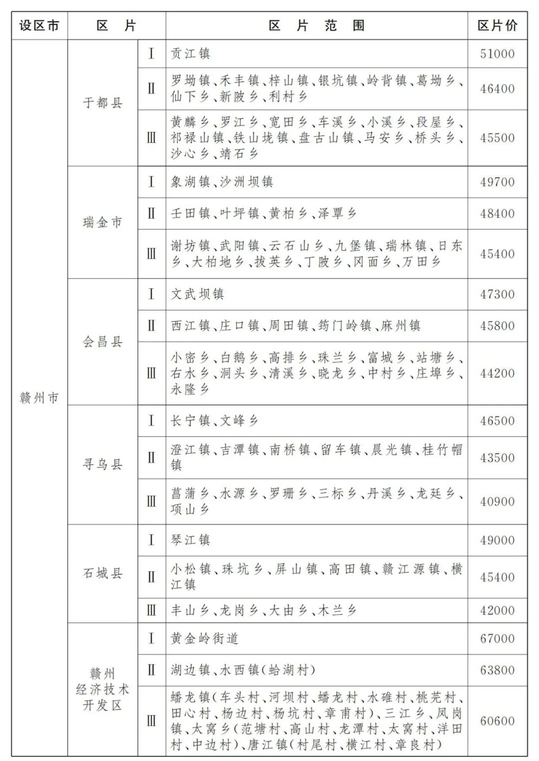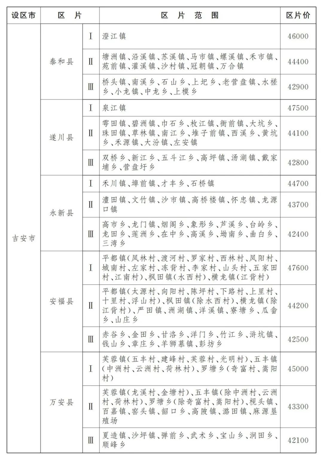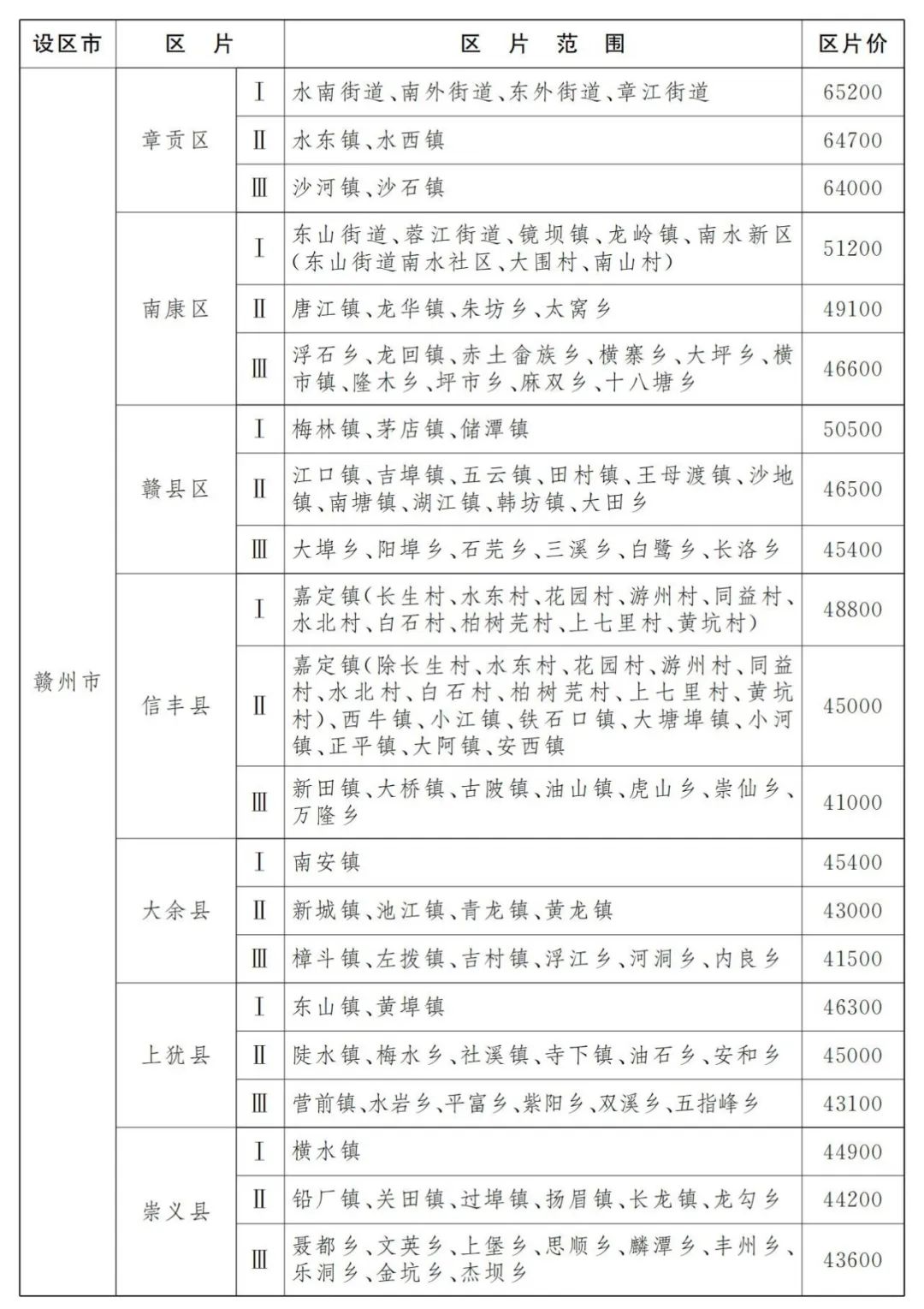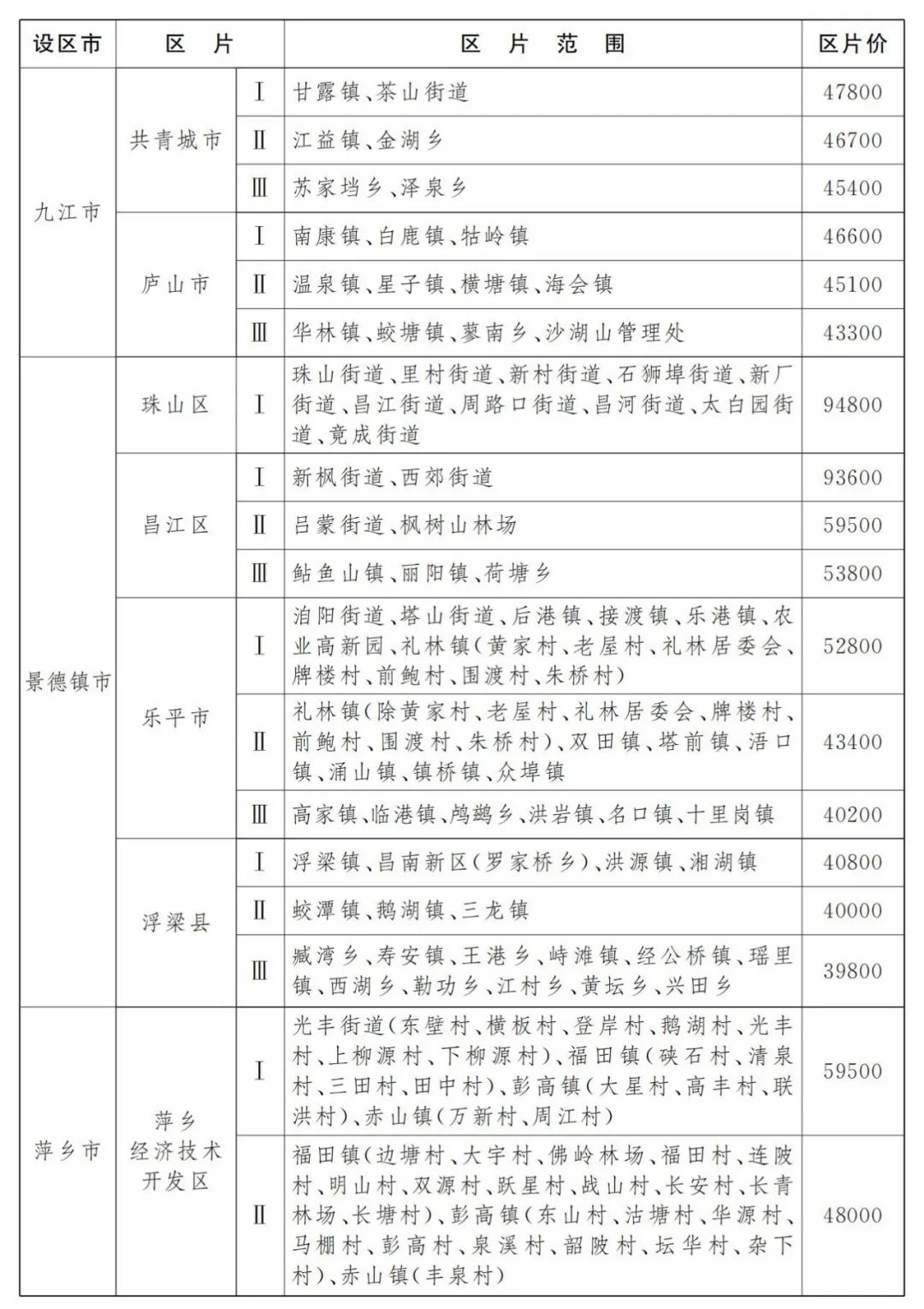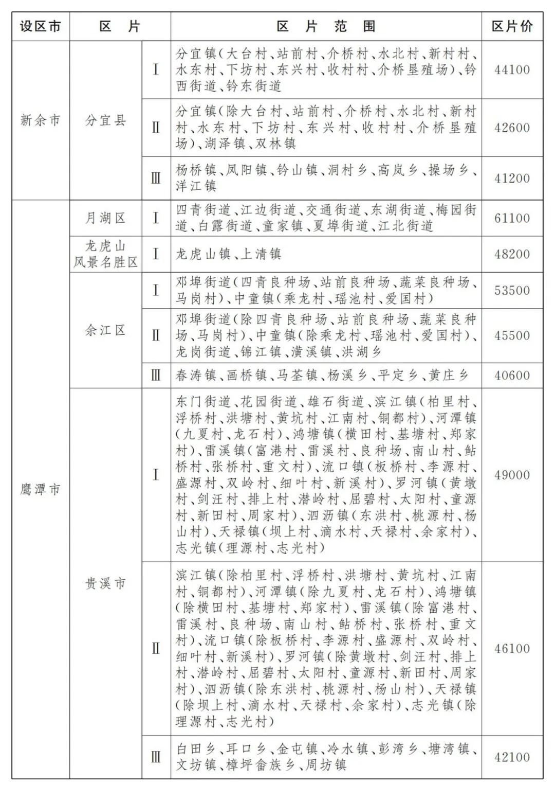 江西省人民政府关于公布全省征地区片综合地价的通知
