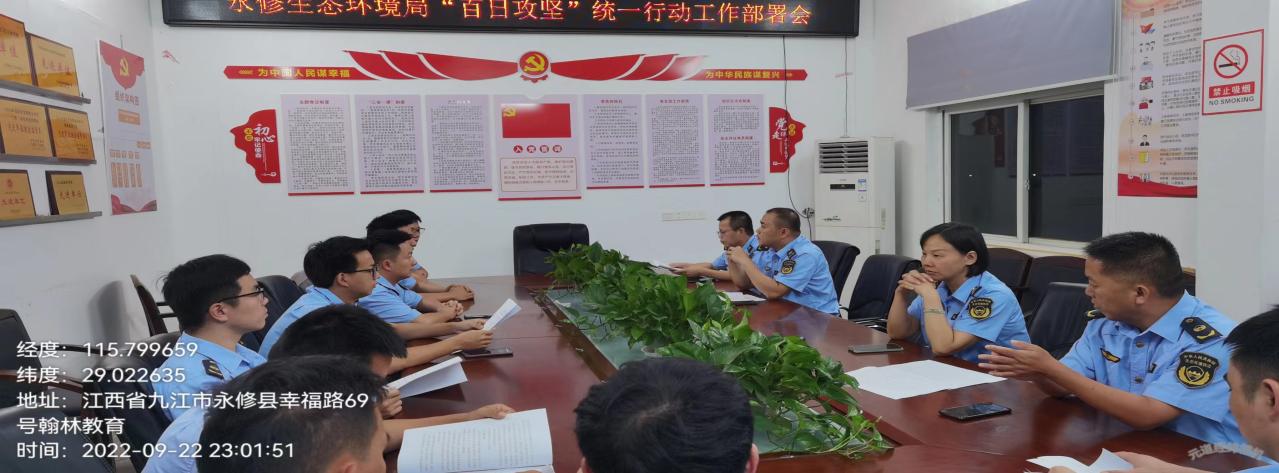 为全面贯彻落实省、市环委会办公室深入打好污染防治攻坚战“百日攻坚”行动部署,积极应对高温干旱气象条件带来的不利影响,确保完成全年生态环境各项目标任务,永修生态环境局闻令而动,迅速召开“百日攻坚”统一行动动员部署会,9月23日凌晨零时一到,全局执法人员立即携带执法设备整装出发,分4个检查组奔赴各点位就大气、水、土壤污染防治存在的问题进行专项执法检查和督导帮扶,以实际行动吹响“百日攻坚”冲锋号。