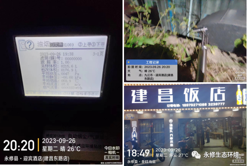 晚上,在餐饮油烟排放重点区域和重点时段,联合检查组对城区餐饮油烟治理情况开展了检查,检查地点为兴隆街周边重点餐饮店,现场抽检了2家餐饮店油烟排放情况。同时检查组对餐饮店油烟净化设施开启、运行、维护等情况进行了详细查看,确保油烟净化器正常开启且能够取得净化效果,并督促做好台账记录。