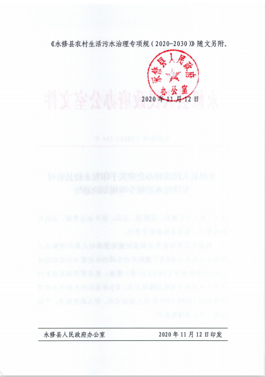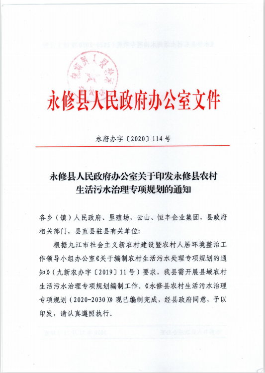 永修县人民政府办公室关于印发永修县农村生活污水治理专项规划的通知