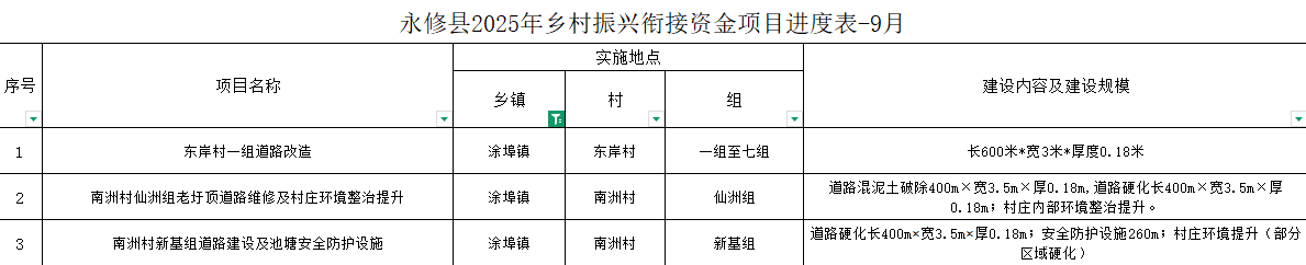 永修县2025年乡村振兴衔接资金项目进度表-9月