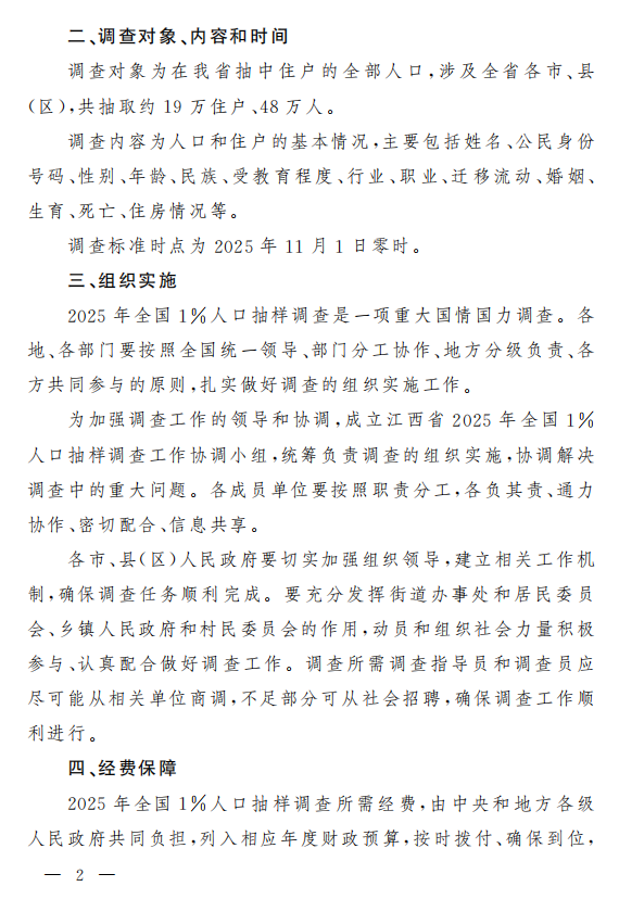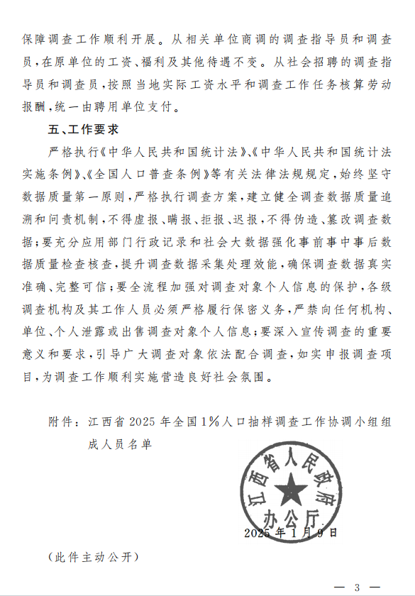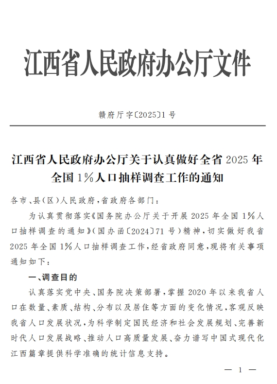 江西省人民政府办公厅关于认真做好全省2025年全国1%人口抽样调查工作的通知