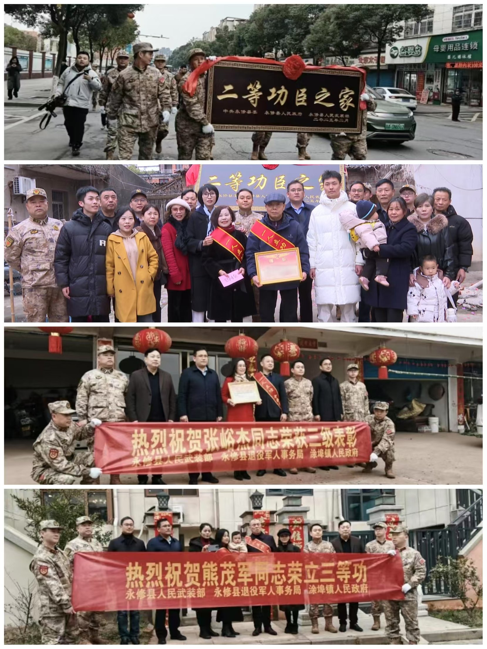 春节前后,永修县借助现役军人探亲休假的契机,共为本县1名荣获二等功、10名荣获三等功、2名荣获三级表彰的现役军人家庭送去立功喜报。