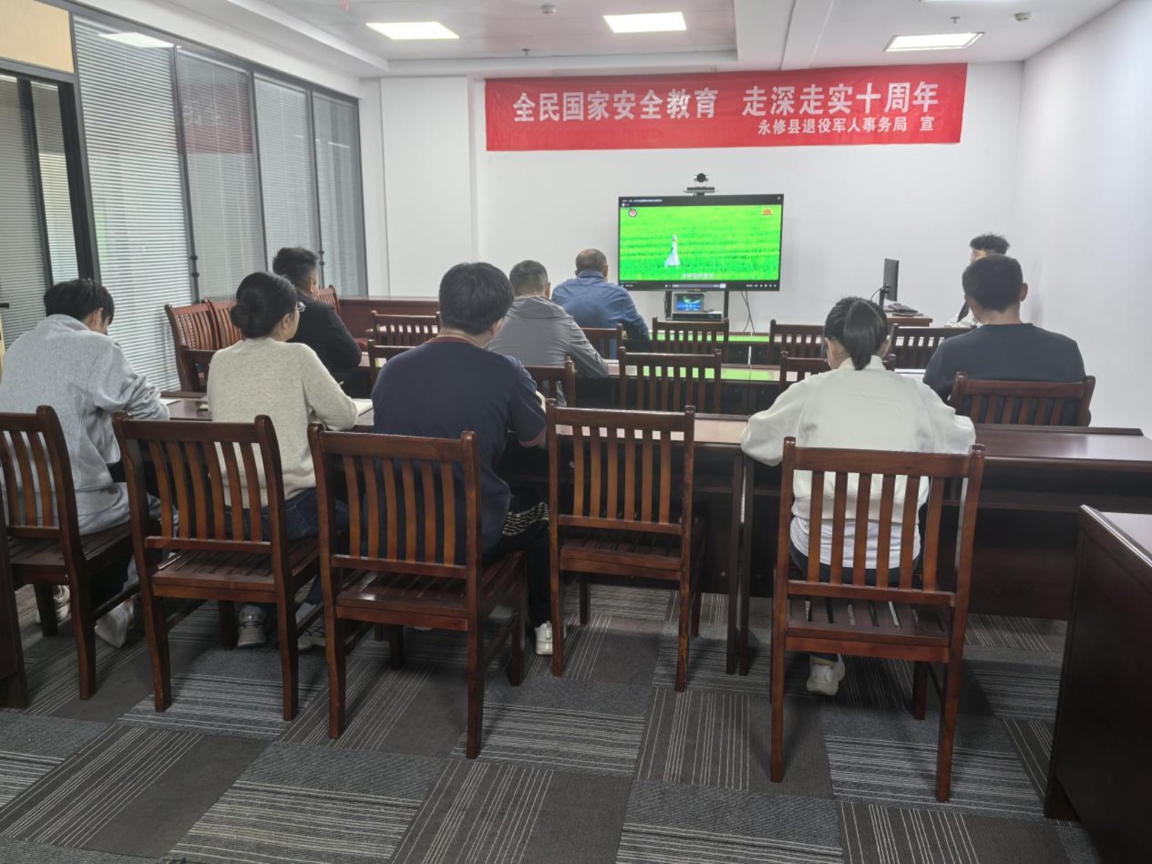 在第十个全民国家安全教育日之际,永修县退役军人事务局紧扣“全民国家安全教育 走深走实十周年”主题,组织局机关全体干部职工开展专题教育活动,着力强化国家安全意识,筑牢全县退役军人事务领域安全防线。
