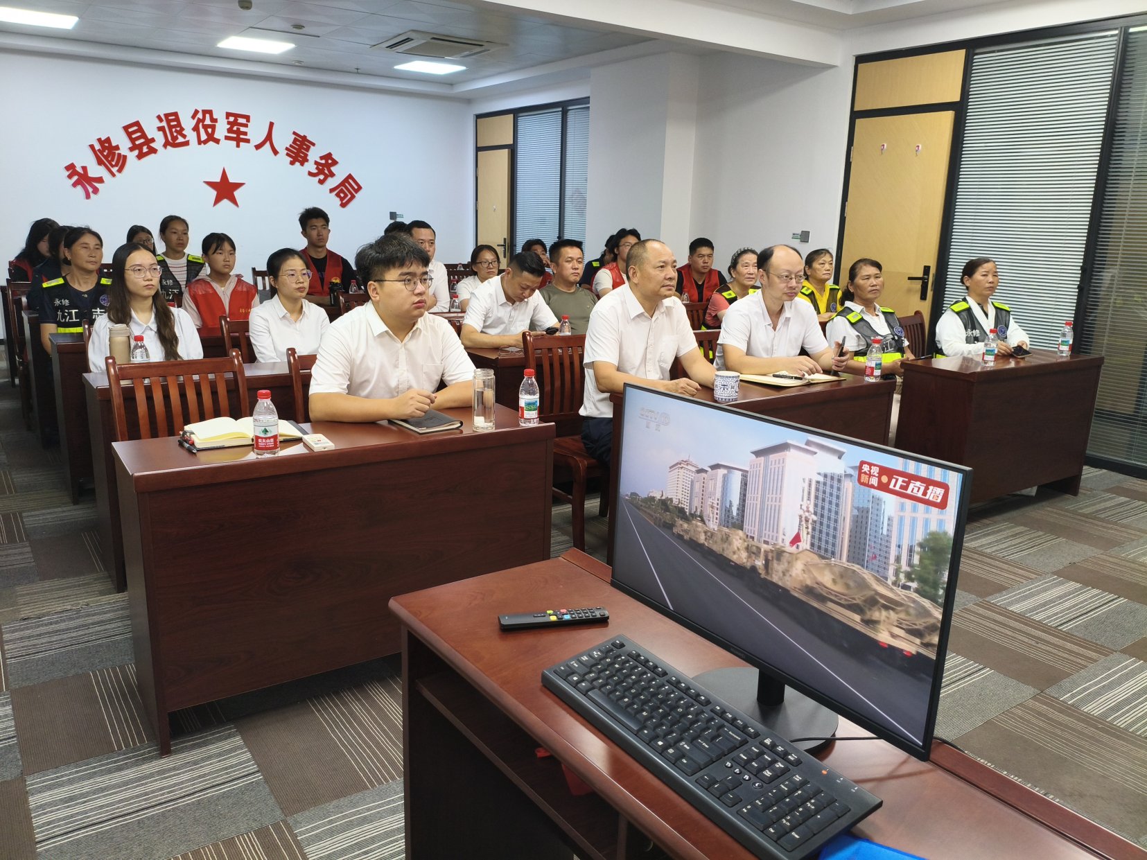 2025年9月3日,在中国人民抗日战争暨世界反法西斯战争胜利80周年这一重大历史时刻,县退役军人事务局机关党支部于局视频会议室组织开展了“峥嵘戎边防 双拥诉衷肠 盛世强武备 复兴我护航”主题党日活动,局机关全体党员干部参加。
