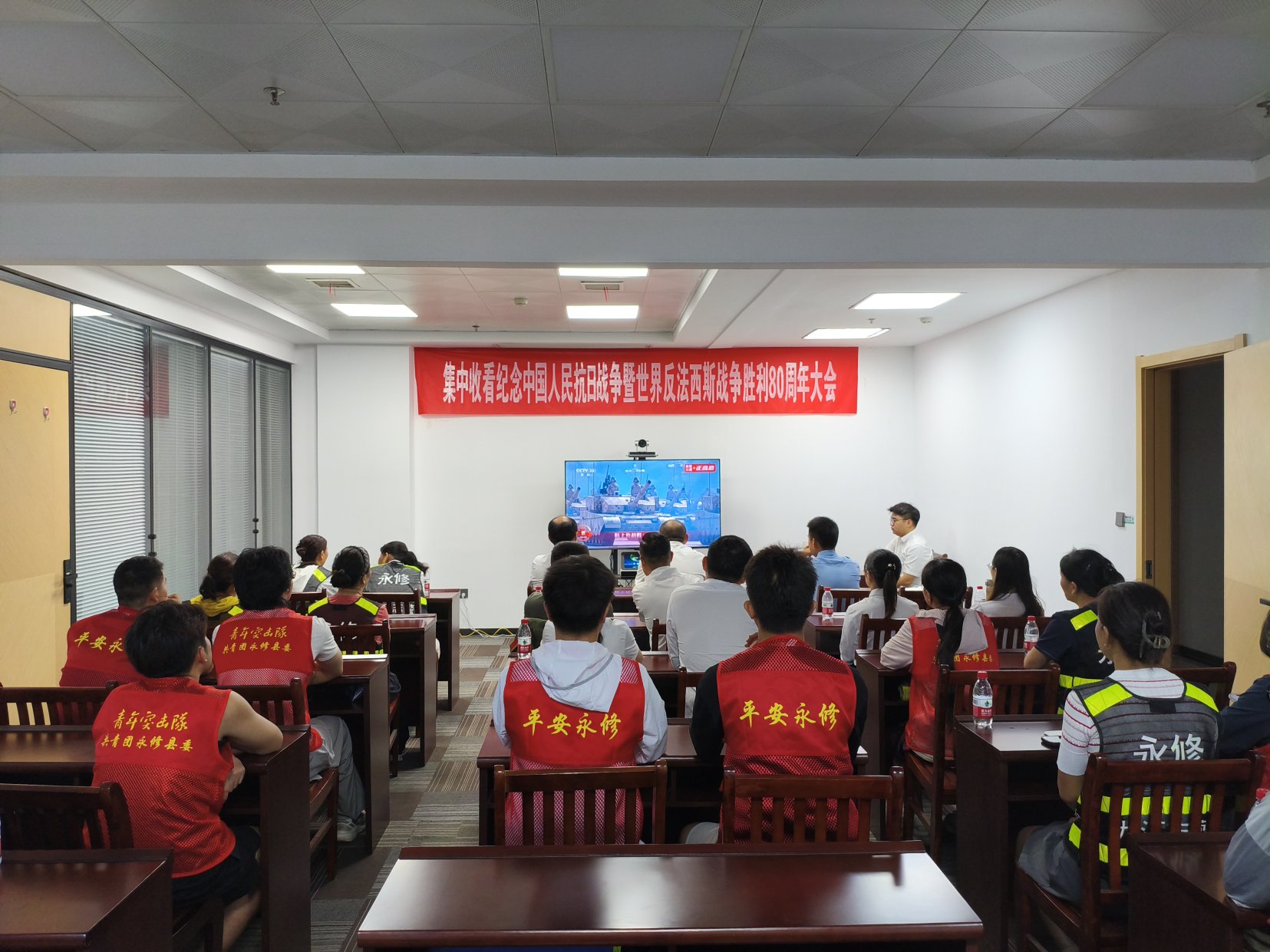 上午9时许,全体党员干部集中收看了纪念中国人民抗日战争暨世界反法西斯战争胜利80周年大会实况,认真聆听习近平总书记重要讲话。通过学习,同志们深刻领悟了伟大抗战精神的历史意义与时代价值,进一步强化了铭记历史、开创未来的使命担当,增强了维护核心、对党忠诚的政治自觉。